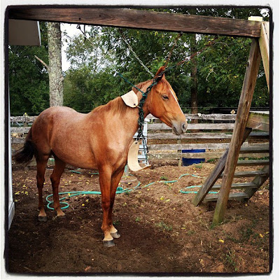 “HEY!!! THERE’S A HORSE CAUGHT IN YOUR SWING SET!!!”